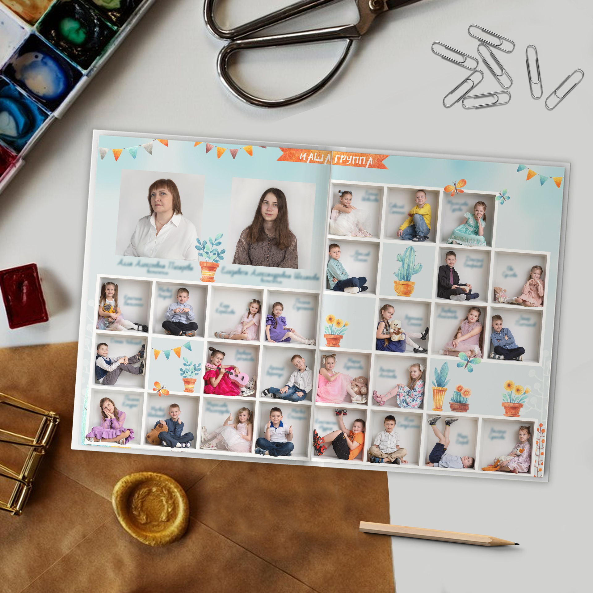 2-й разворот виньетка (дети и воспитатели с подписями фамилий)
